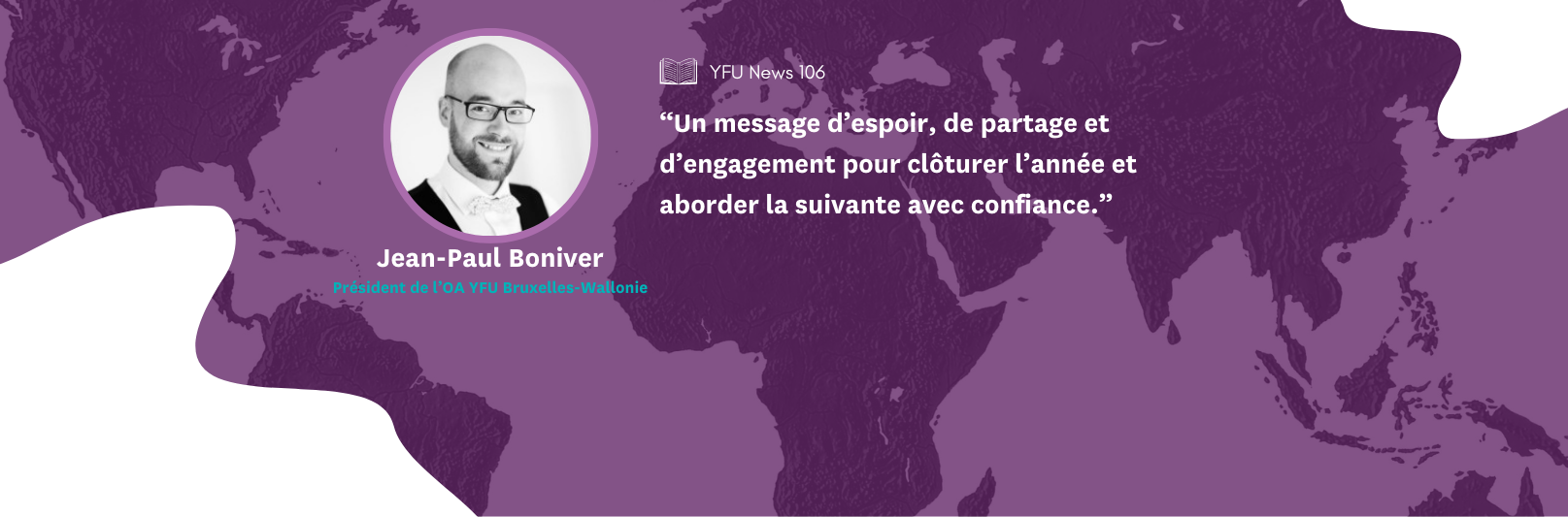 Nous revoici pour un nouveau numéro de notre YFU News. Nous en sommes déjà au dernier numéro de cette année 2025. Cette année aura été riche aussi bien au niveau de son actualité internationale que nationale. Et malheureusement pas toujours riche en actualités très positives. Avec des conflits qui s’éternisent, des tensions de plus en plus présentes entre les différentes sphères d’influence de la planète… On ne sait parfois plus trop quoi penser de tout cela. Au niveau national et régional, le train des nouvelles réformes risque de toucher beaucoup de personnes, et notre secteur en particulier. En effet, le monde associatif risque bien d’être impacté par ces changements, et plus que jamais, YFU devra montrer que son existence est essentielle et a toute sa raison d’être dans le paysage culturel belge et international.